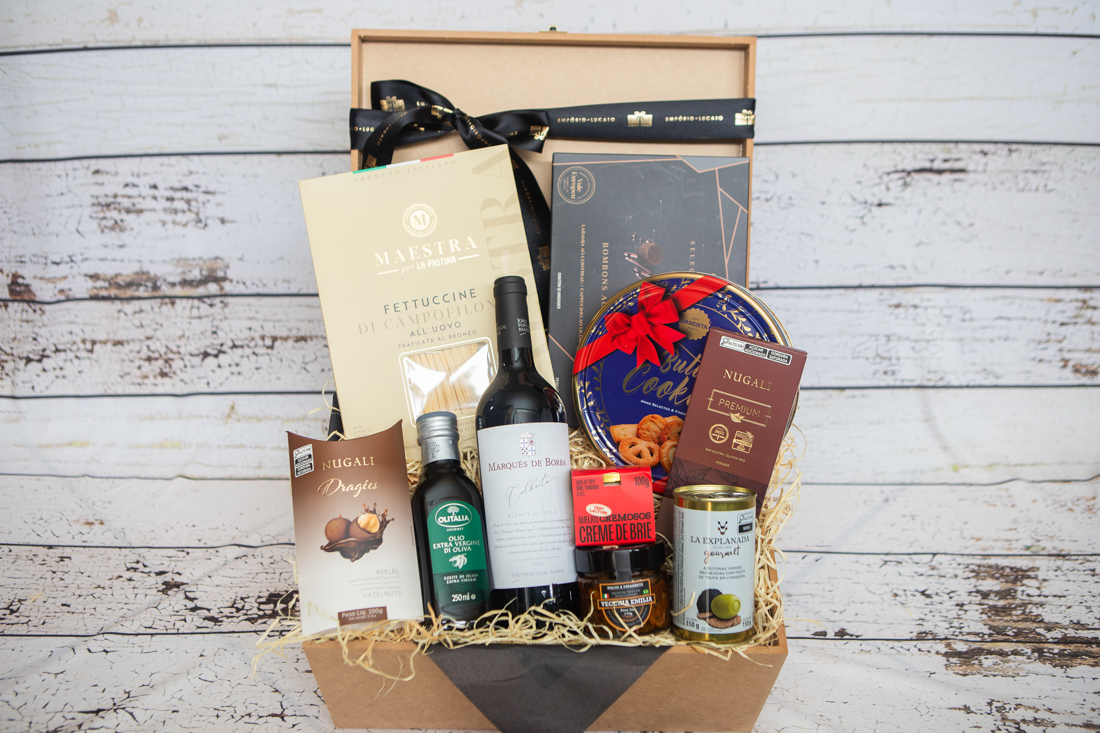 Cesta Gourmet com Vinho Marquês de Borba & Chocolates