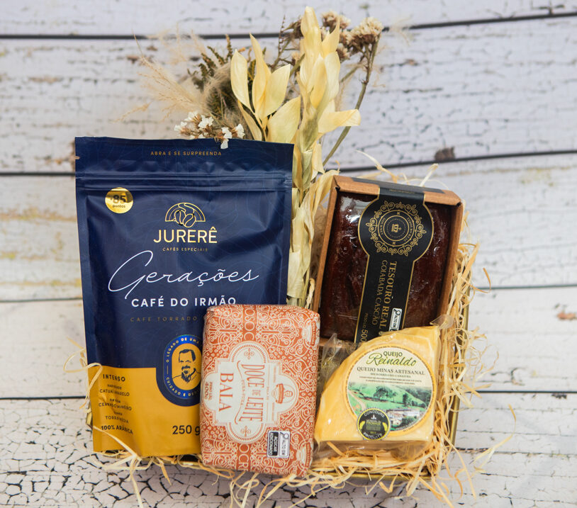 SKU: 552 Categoria: Cestas e Presentes Gourmet Tags: #cafeespecial, #cafepontuado, #cestamineira, #docesminas, #minasgerais, #queijocanastra